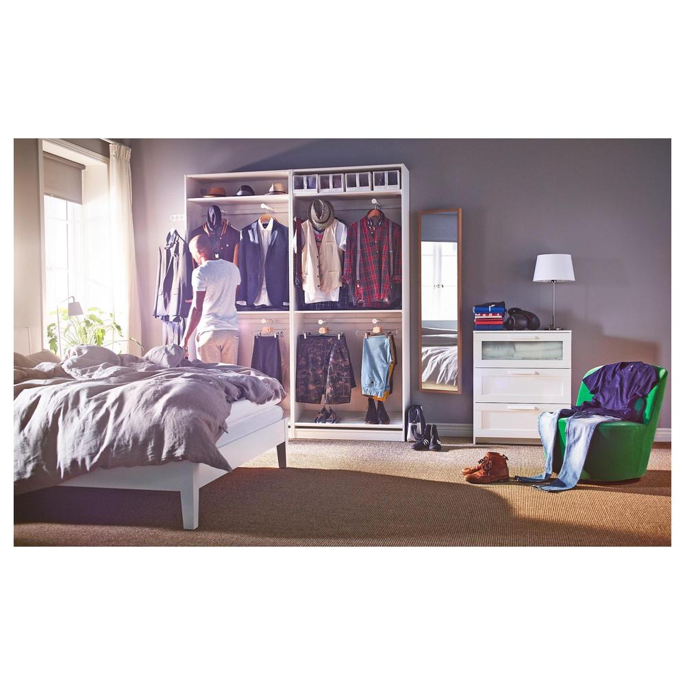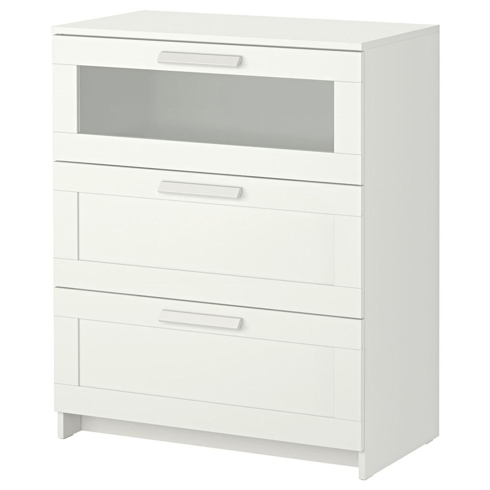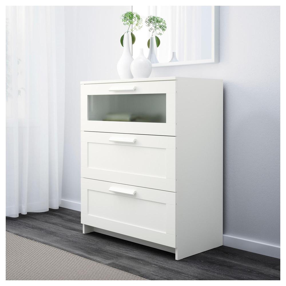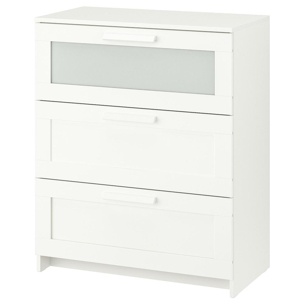 БРИМНЭС Комод с 3 ящиками - белый/матовое стекло