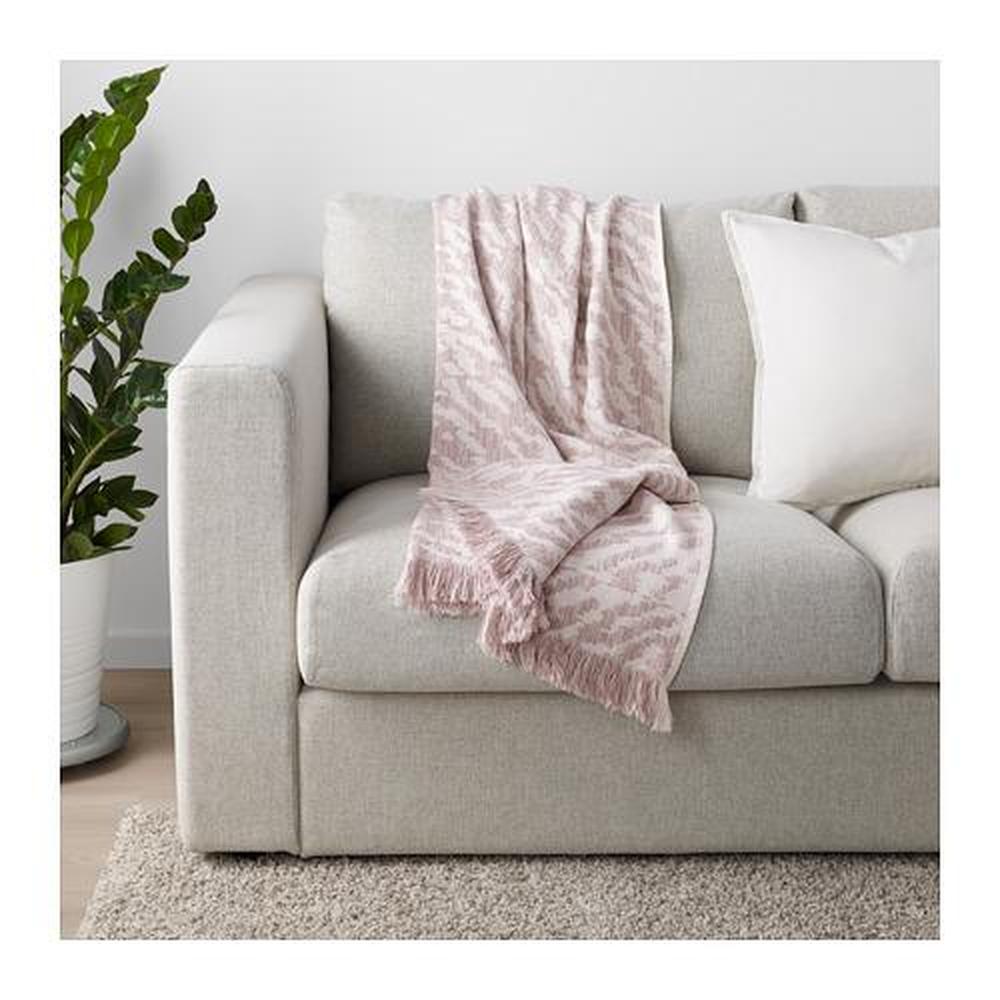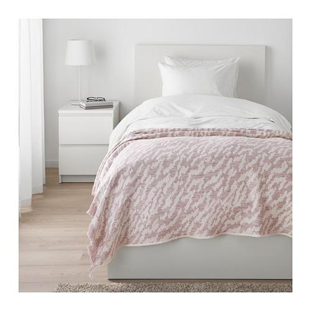 Ткань пледа изготовлена жаккардовым плетением, поэтому его декоративный орнамент виден с обеих сторон.