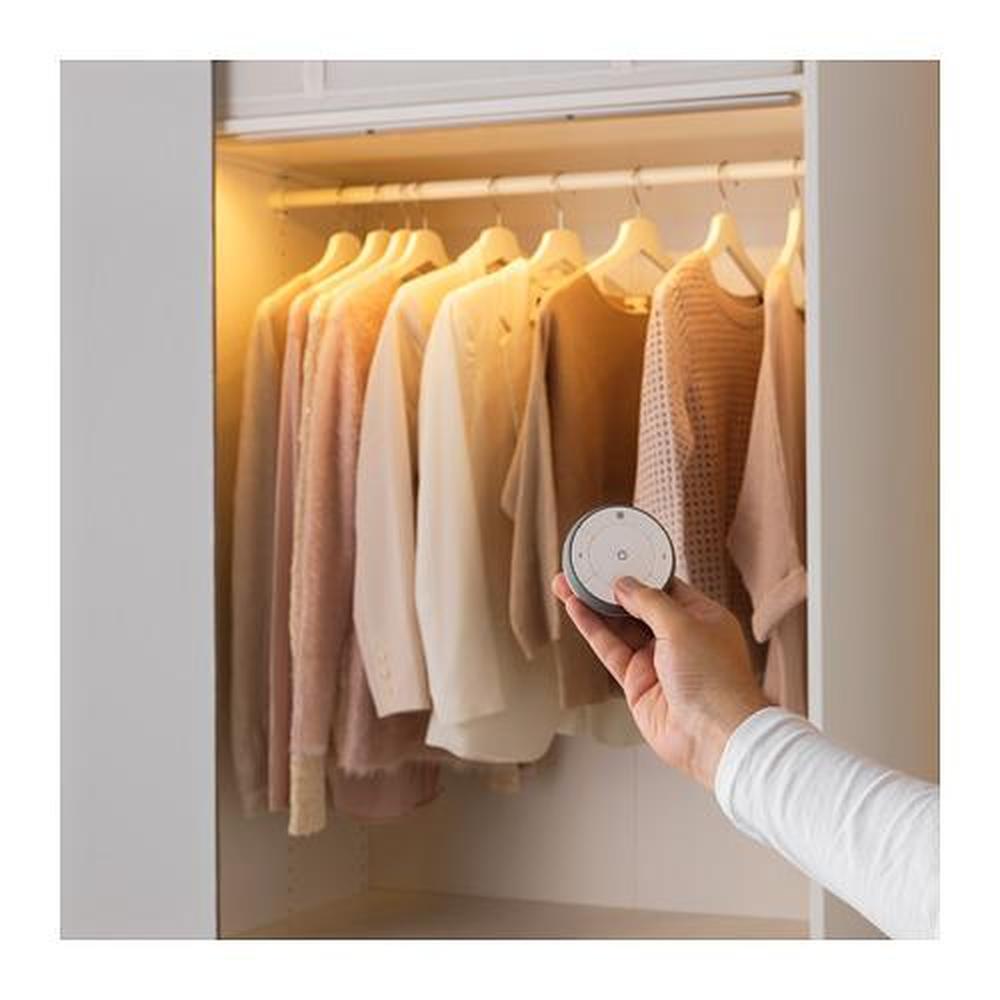 С помощью пульта ТРОДФРИ вы можете управлять работой до 10 светодиодных лампочек, светодиодных панелей или светодиодных дверец одновременно – менять их яркость, включать и выключать, менять цвета и постепенно переключаться с теплого света на холодный.