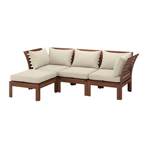 ÄPPLARÖ 3-местный модульный диван, садовый с табуретом для ног коричневая морилка/Холло бежевый