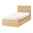 MALM каркас кровати+2 кроватных ящика дубовый шпон, беленый