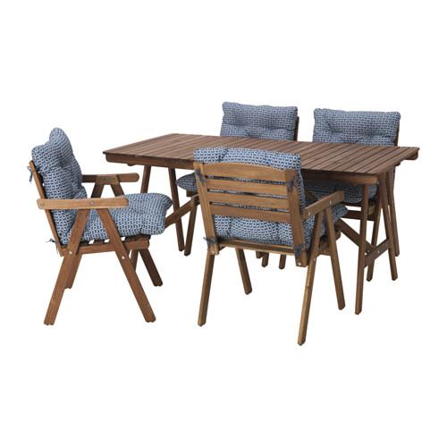 FALHOLMEN стол+4 кресла, д/сада светло-коричневая морилка/Иттерон синий