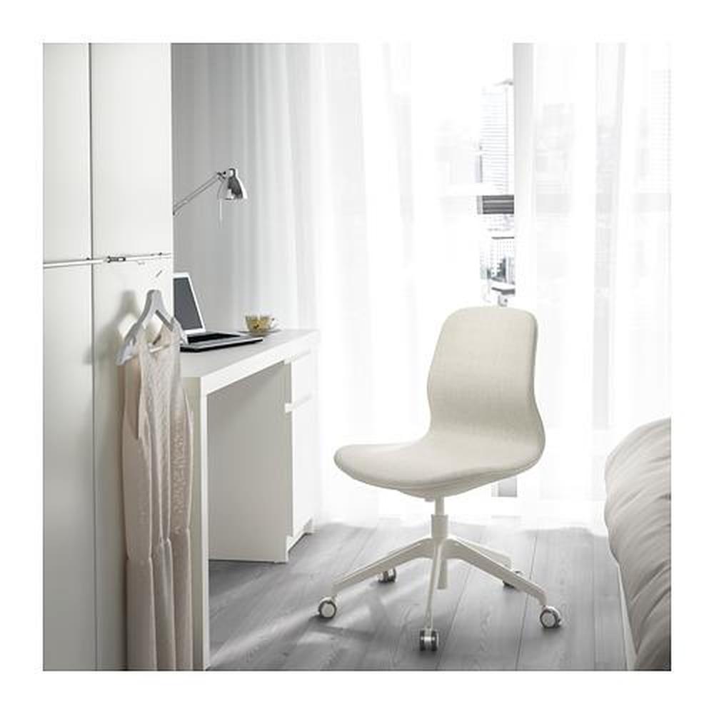 Этот офисный стул отличается плавными линиями, продуманными деталями и простым в использовании механизмом, который спрятан под сиденьем.