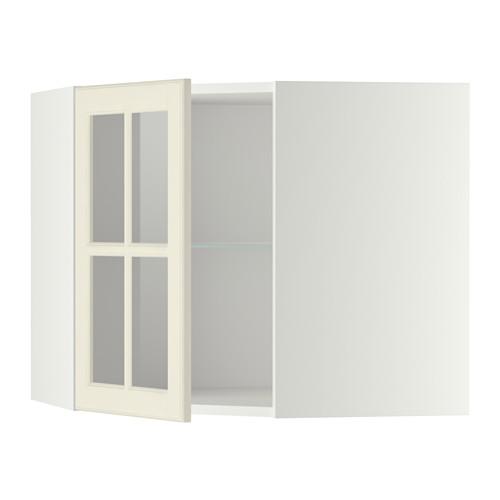 METOD углов навесн шк с полками/сткл дв белый/Будбин белый с оттенком