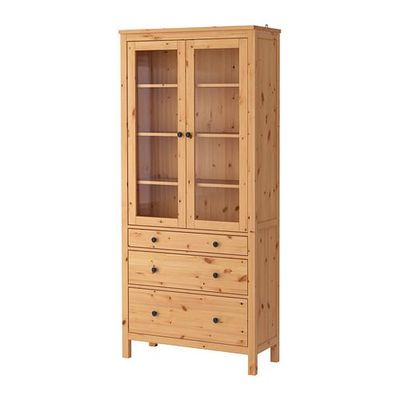 ХЕМНЭС Шкаф-витрина с 3 ящиками - светло-коричневый