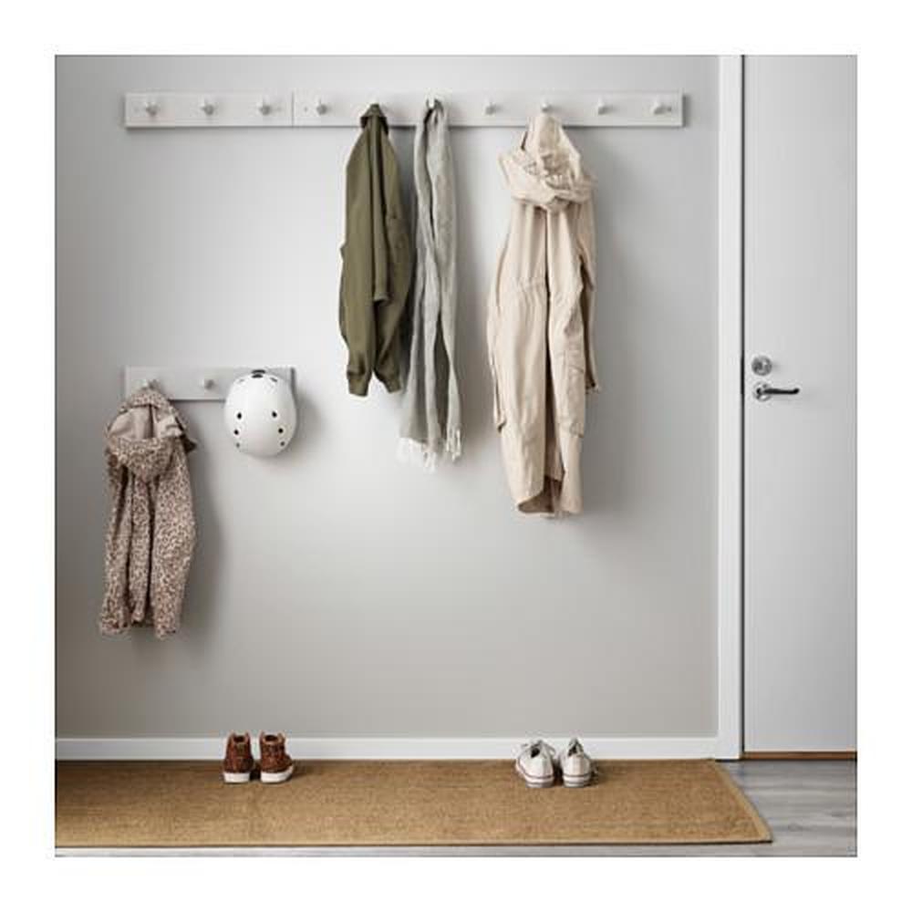 Вы можете повесить пальто, сумки и аксессуары. Можно дополнить скамьей с полкой для обуви ПИННИГ. Если у вас много вещей, закрепите на стене две или несколько вешалок в ряд.
