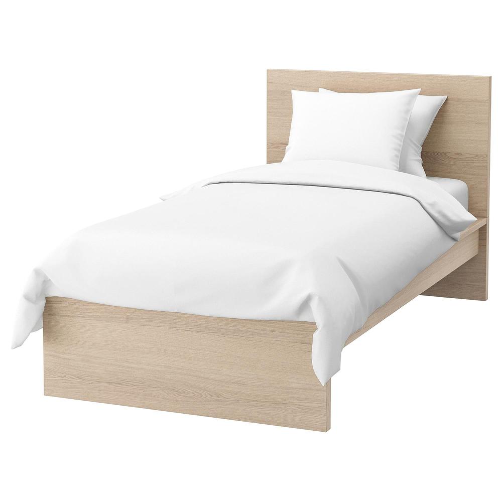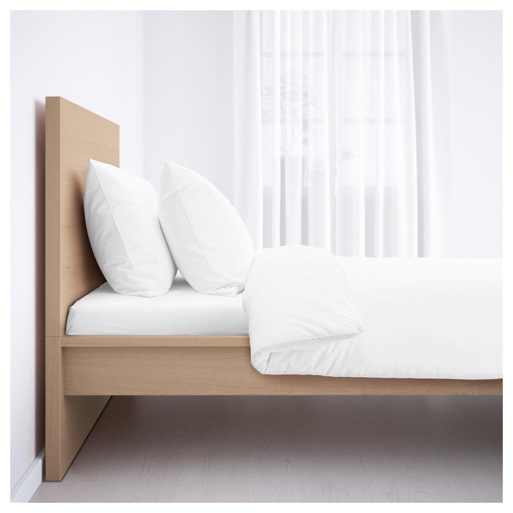 МАЛЬМ Каркас кровати, высокий - дубовый шпон, беленый