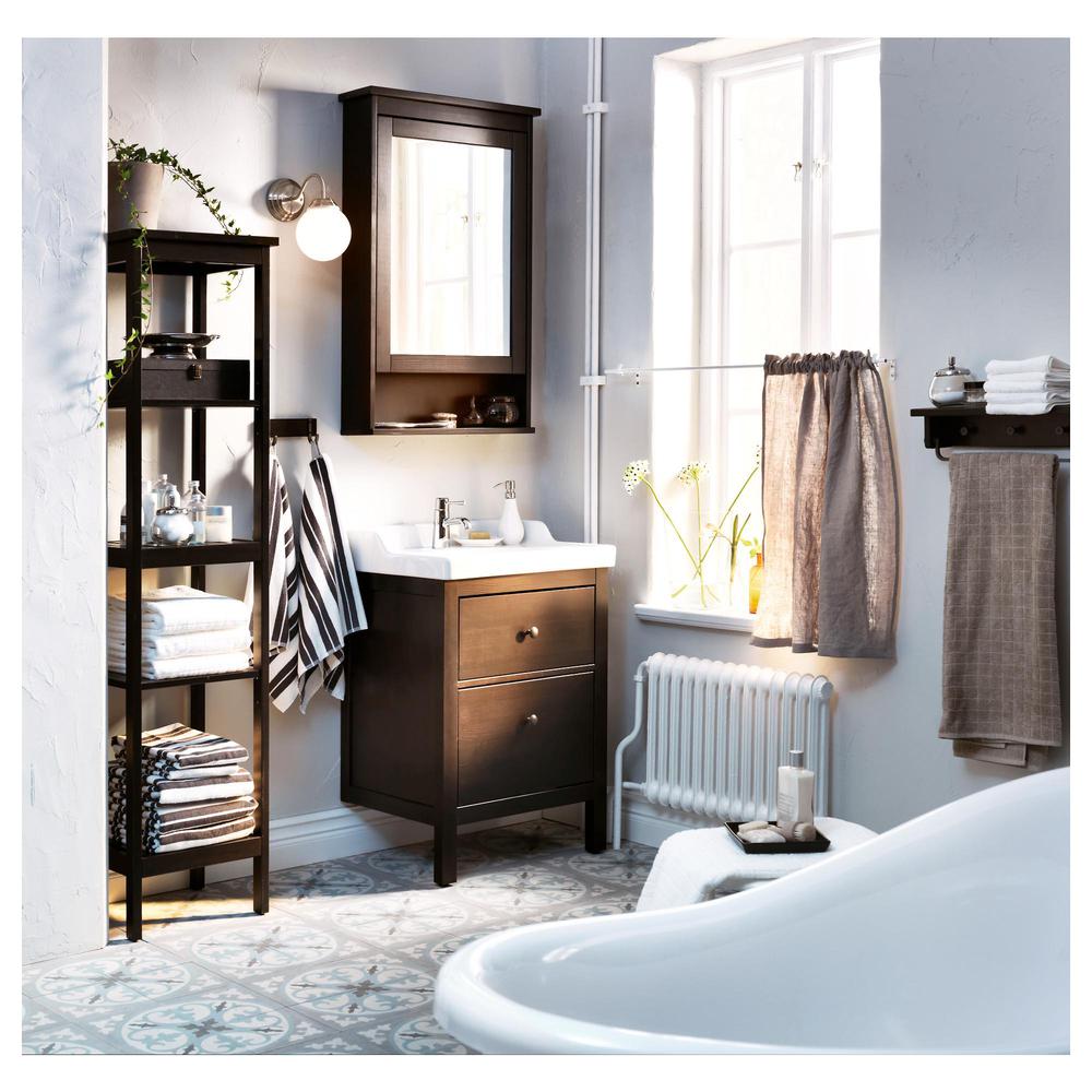 ХЕМНЭС Зеркальный шкаф с 1 дверцей - морилка черно-коричнев