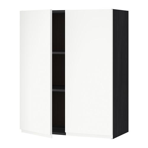 METOD навесной шкаф с полками/2дверцы черный/Воксторп белый 80x100 см