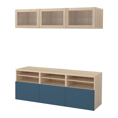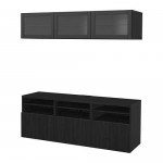 BESTÅ шкаф для ТВ, комбин/стеклян дверцы желтый