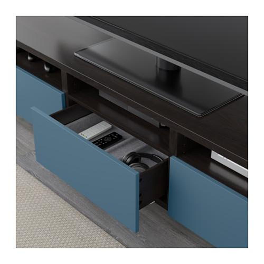 Благодаря нескольким отверстиям на задней панели тумбы под ТВ провода от телевизора и других устройств всегда будут под рукой, но не на виду. Благодаря интегрированному нажимному механизму ящики открываются легким нажатием. Специальное отверстие в верхней панели обеспечит удобное и компактное размещение проводов. Три вместительных ящика обеспечат порядок в хранении. Ножки придают комбинации БЕСТО более легкий вид, поднимая модули на полом. Кроме того, это упрощает уборку.