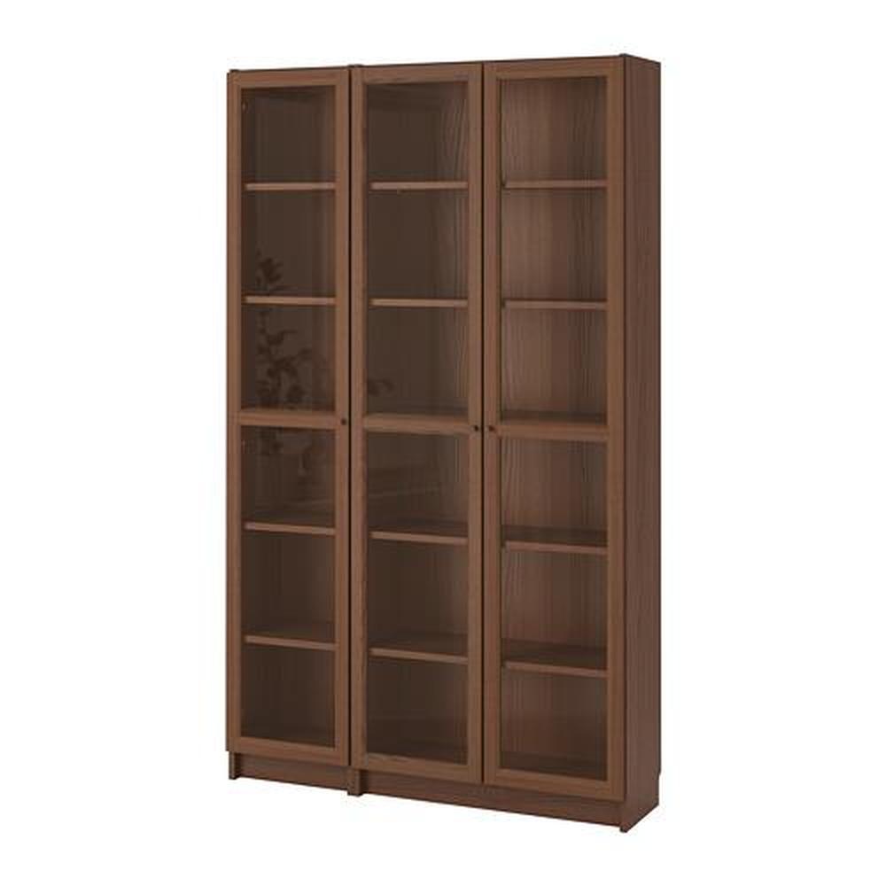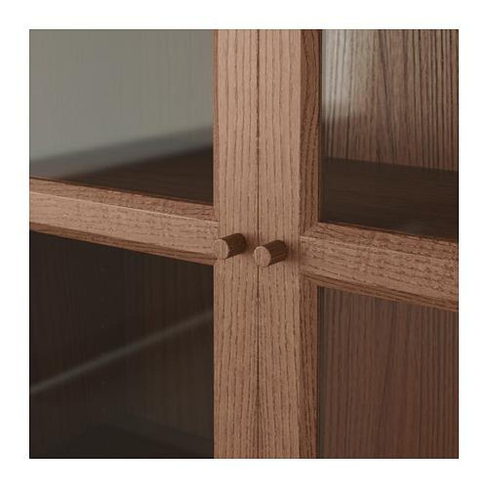 BILLY/OXBERG шкаф книжный со стеклянными дверьми коричневый ясеневый шпон