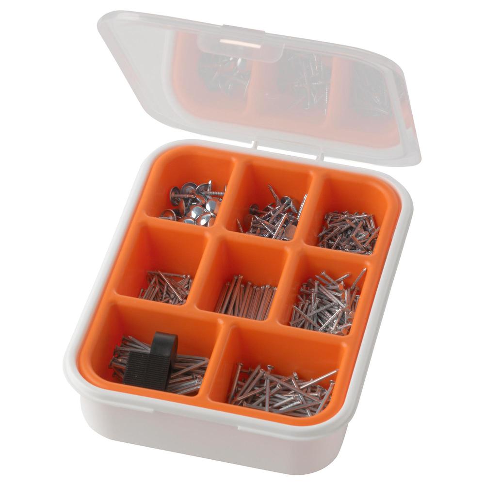 ВРазмеры (диам. x длина): проволочные гвозди 1,7x45 мм, 1,7x35 мм по 50 шт.; 1,4x25 мм, 1,4x15 мм по 100 шт.; гвозди с потайной головкой 1,7x40 мм 50 шт., 1,2x20 мм 100 шт.; гвозди с плоской шляпкой 1,9x20 мм 50 шт.; мебельные гвозди 1,9x17 мм 50 шт.