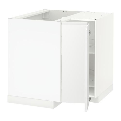 METOD угл напольн шкаф с вращающ секц белый/Воксторп матовый белый 87.5x89.6x88 cm