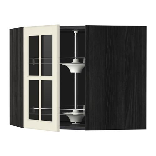 METOD углов навесн шк с врщ скц/сткл дв черный/Будбин белый с оттенком 68x60 см