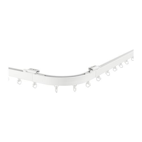В комплект входит: 4 потолочных крепления, 2 одинарные гардинные шины (длина 140 см), 1 угловое соединение и 2 упаковки бегунков и крючков.