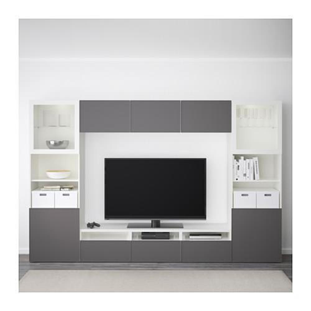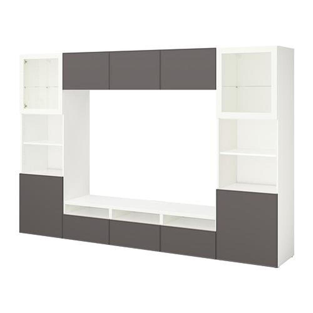 BESTÅ шкаф для ТВ, комбин/стеклян дверцы серый