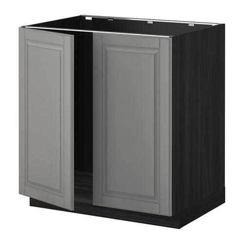 METOD напольн шкаф д раковины+2 двери черный/Будбин серый