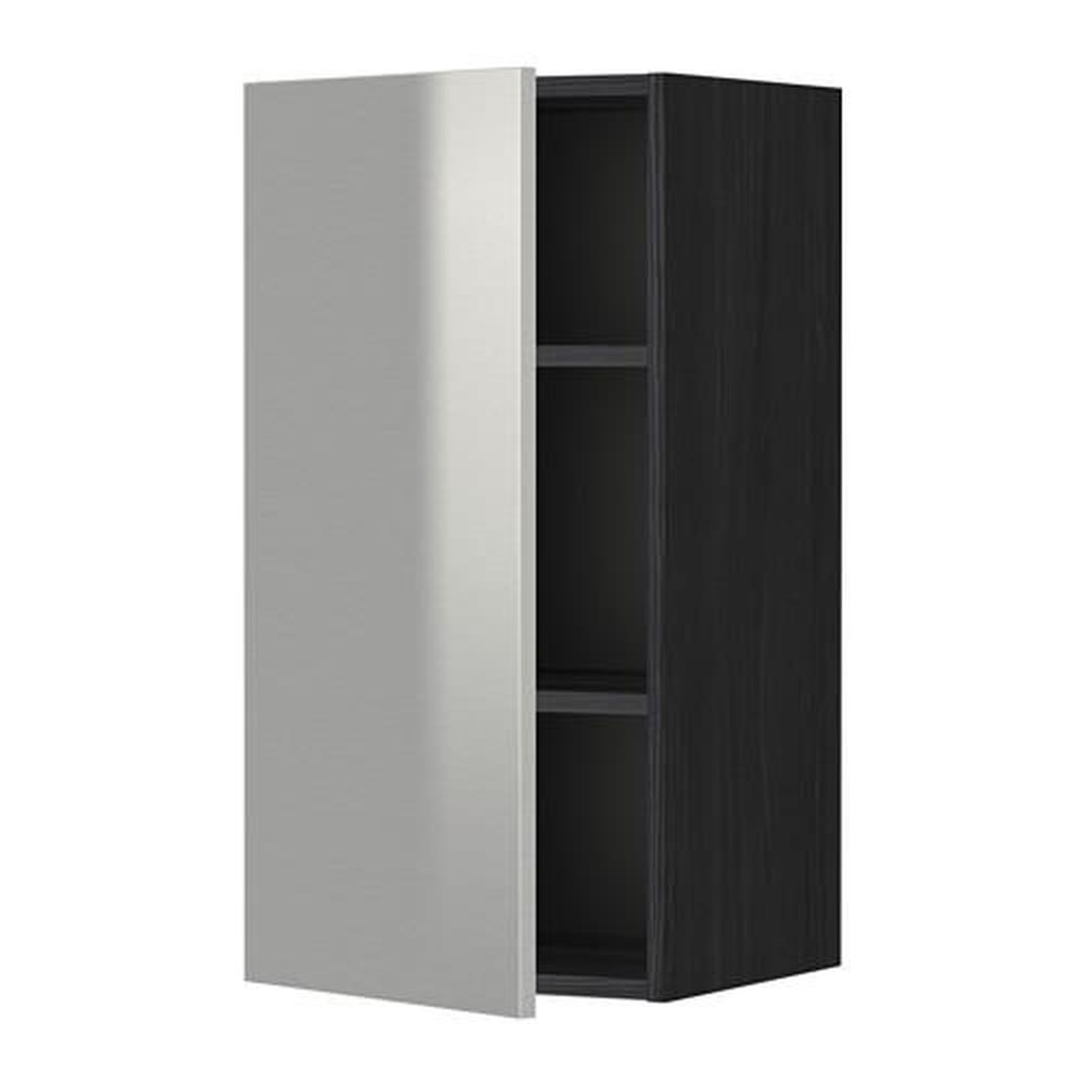 METOD шкаф навесной с полкой черный/Гревста нержавеющ сталь 40x80 см