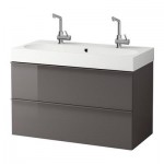 ГОДМОРГОН Шкаф для раковины с 2 ящ - глянцевый серый, 100x47x58 см