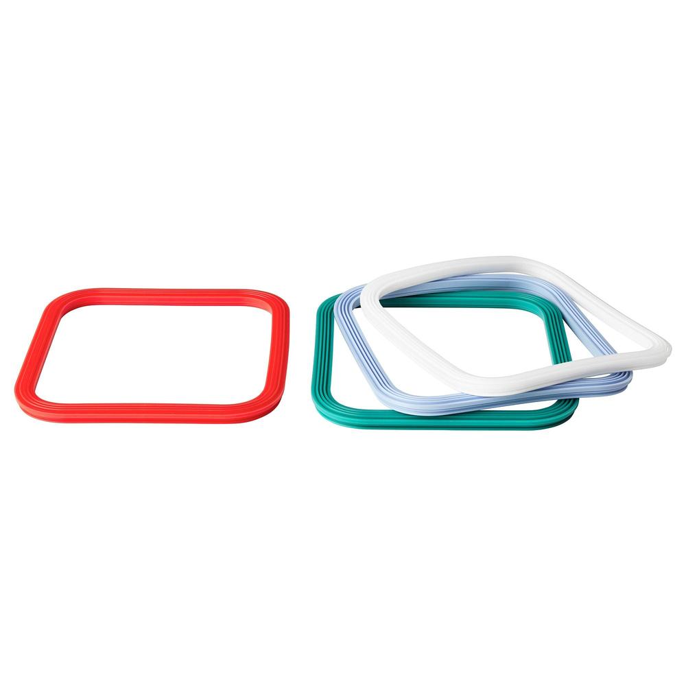 -Четыре разноцветные съемные уплотнительные прокладки сделают хранение продуктов в контейнерах более удобным. Выберите цвет для каждого члена семьи или вида продуктов, или даже дня недели.