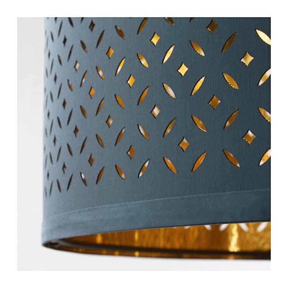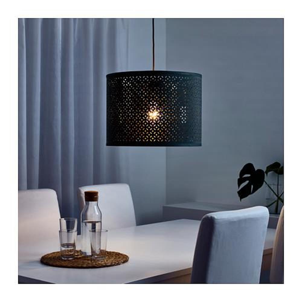 Создает декоративное освещение в комнате; свет проходит через перфорированный абажур.