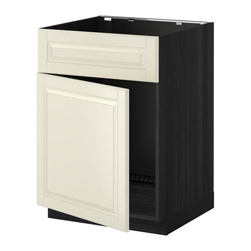 METOD напольный шкаф п-мойку с дв/фр пнл черный/Будбин белый с оттенком 60x60 см
