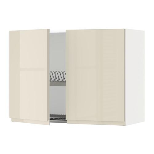 METOD навесной шкаф с посуд суш/2 дврц белый/Воксторп глянцевый светло-бежевый 80x60 см