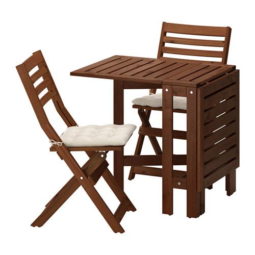 ÄPPLARÖ стол+2 складных стула,д/сада коричневая морилка/Холло бежевый