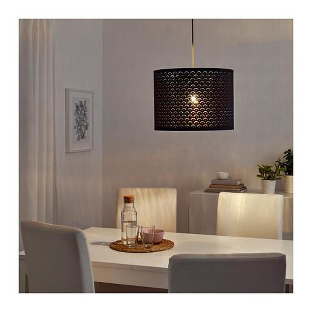 Создает декоративное освещение в комнате; свет проходит через перфорированный абажур.