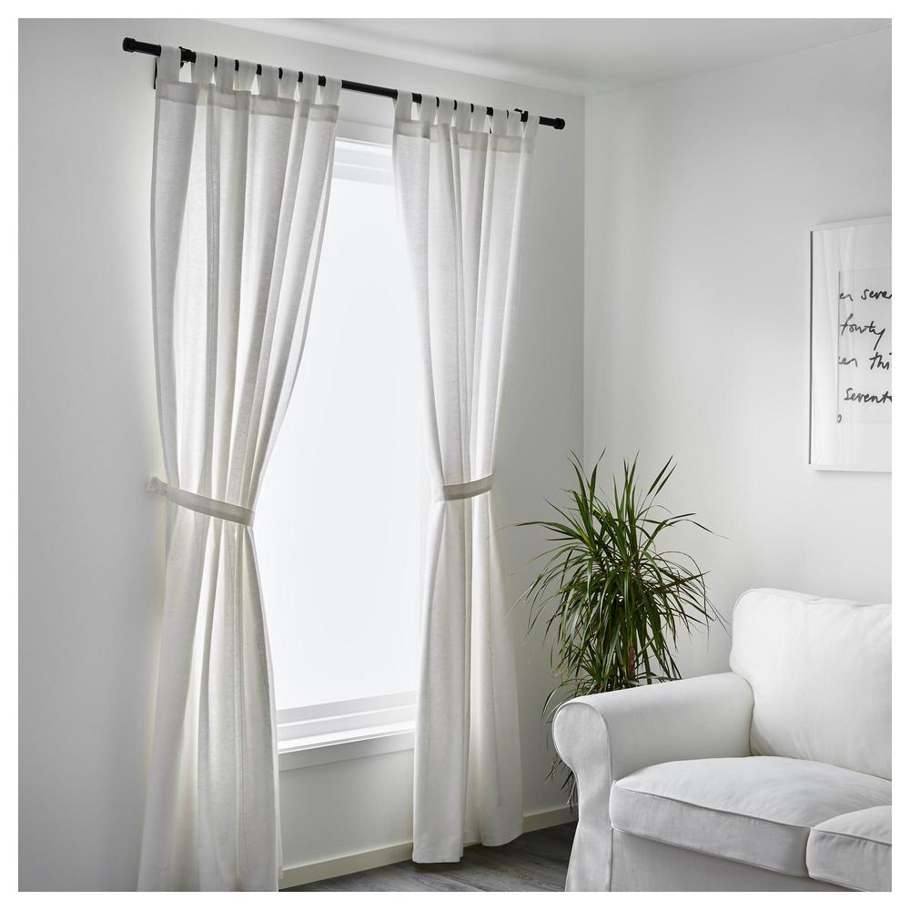 Гардины ИКЕА продаются по 2 штуки в упаковке. К ним также прилагается клеевая тесьма СИ, благодаря которой Вы сможете легко обработать края гардин и повесить их уже в день покупки.