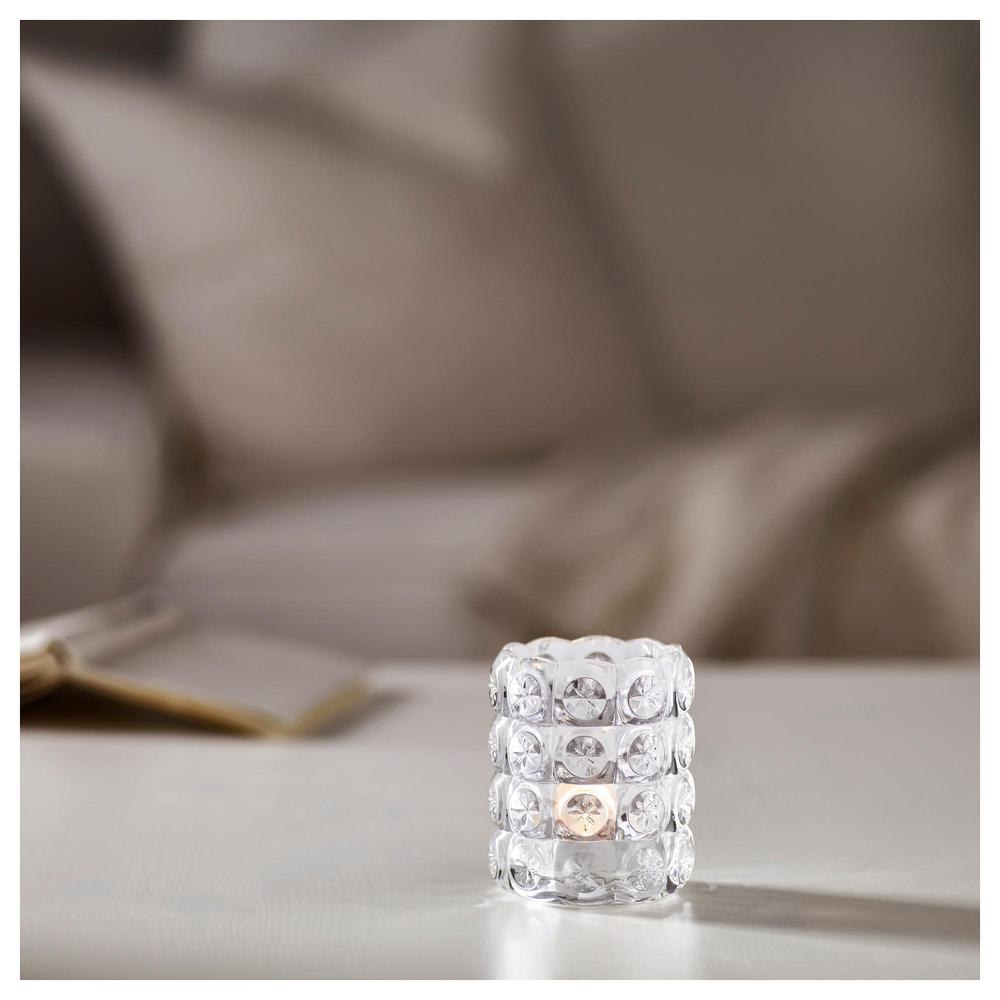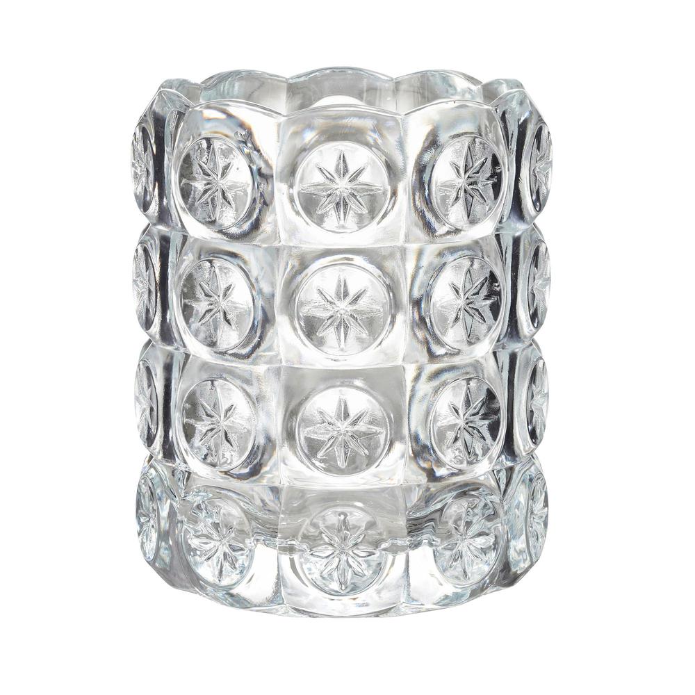-Прозрачное стекло отражает и усиливает мягкое мерцание пламени свечи.