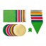 В набор входит: 78 цветных листов для оригами/60 г. 13 цветов и 3 формы: треугольник 25x25 см, круг диам. 25 см и квадрат 25x25 см, по 2 шт.
