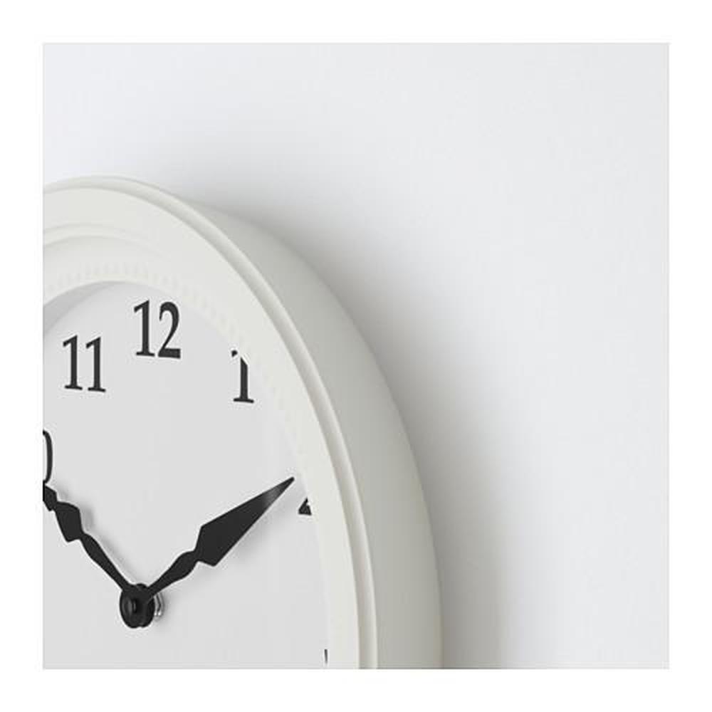 Часы могут стать частью эффектного настенного коллажа, если дополнить их картинами в рамах СЁНДРУМ такого же дизайна.