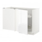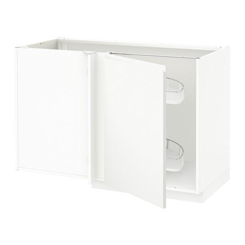 METOD угловой напол шкаф с выдвижн секц белый/Воксторп матовый белый 127.5x67.5x88 cm