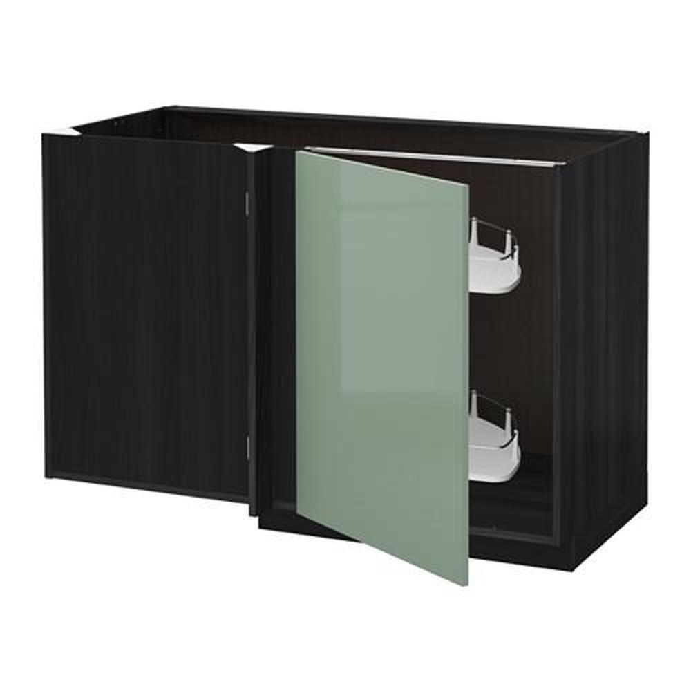 Используйте прилагающуюся белую планку, если Вы размещаете модуль с ящиками под прямым углом к угловому шкафу. Планка может быть прикрыта накладной панелью, чтобы соответствовать дверцам кухонных шкафов.