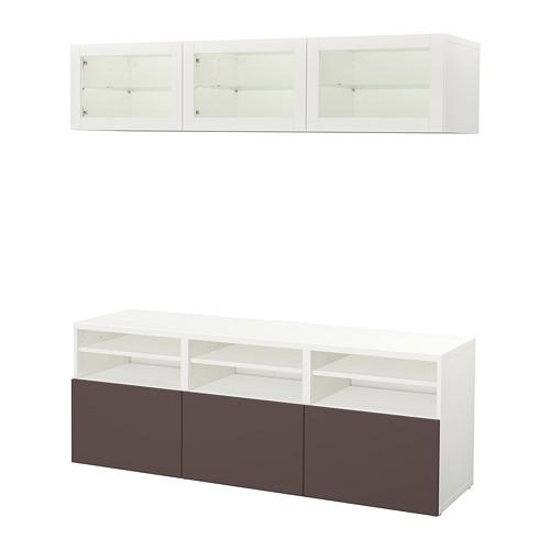 BESTÅ шкаф для ТВ, комбин/стеклян дверцы желтый