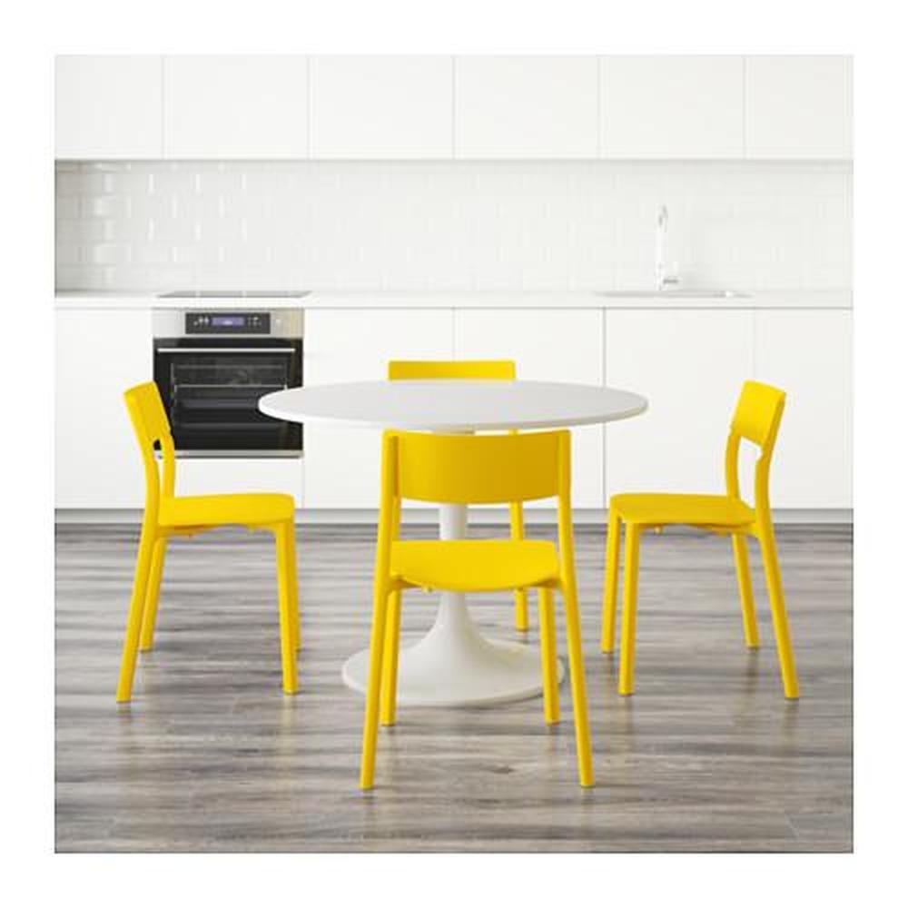 DOCKSTA/JANINGE стол и 4 стула белый/желтый 105 см