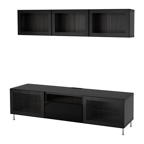 BESTÅ шкаф для ТВ, комбин/стеклян дверцы серый