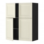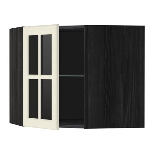 METOD углов навесн шк с полками/сткл дв черный/Будбин белый с оттенком 68x60 см