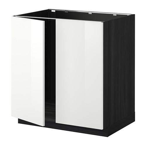 METOD напольн шкаф д раковины+2 двери черный/Рингульт белый 80x60 см