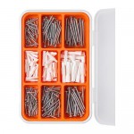 В набор входит: застежки-липучки для шнура 300x25 мм 3 шт., фиксаторы для шнура 7x203 мм 20 шт., кабельные фиксаторы для кабеля диаметром 3–4 мм 40 шт. и для кабеля диаметром 7–10 мм 25 шт., самоклеющиеся фиксаторы 16x12x8 мм 20 шт. и 31x25x7 мм 6 шт.