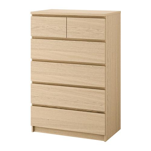 MALM комод с 6 ящиками дубовый шпон, беленый 80x123 см
