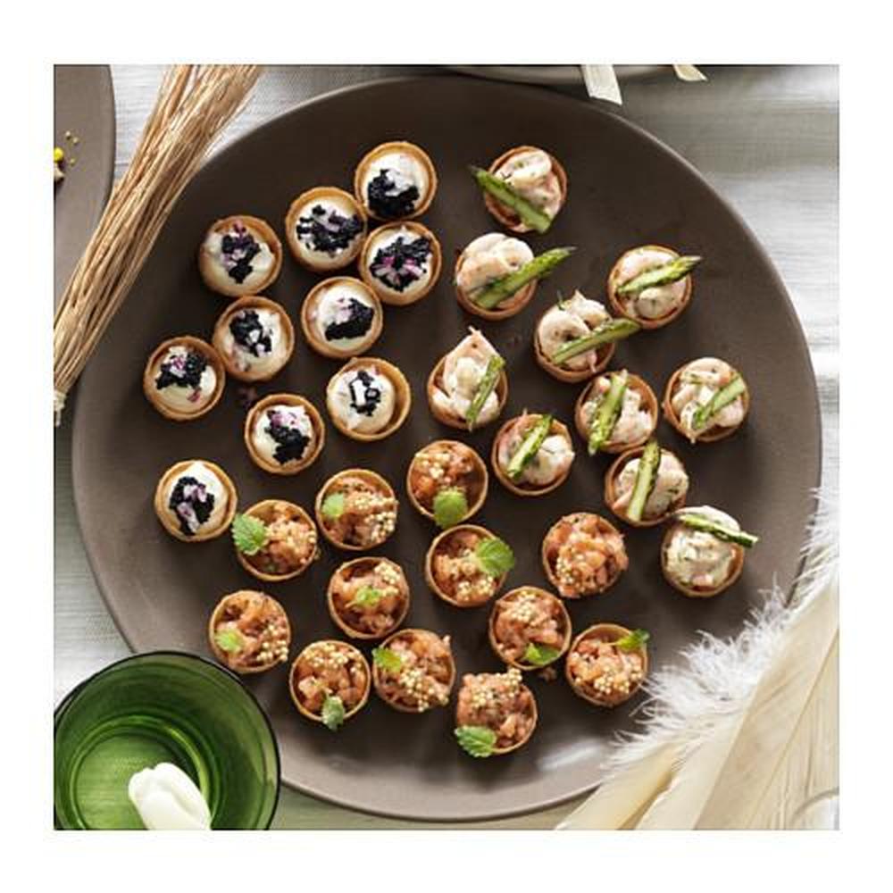 На традиционном шведском столе "smörgåsbord" часто можно найти тарталетки с горячими или холодными наполнителями: грибами, креветками, сельдью, икрой, паштетами или мягким сыром. Такие тарталетки – прекрасная закуска к аперитиву. Рецепты и идеи Вы найдете на упаковке тарталеток KRUSTADER RAHMS.