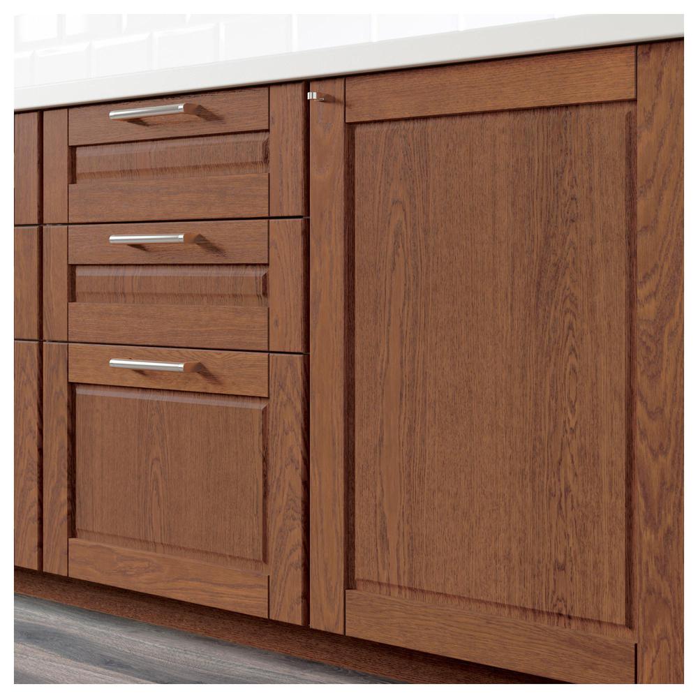 Каркас дверцы ФИЛИПСТАД изготовлен из массива дуба, а панель покрыта дубовым шпоном. Насыщенный цвет и выразительная фактура дерева придадут особое очарование и уют вашей кухне.