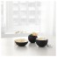 В набор входит: 1 миска (высота 7 см, диам. 9 см), миска (высота 7 см, диам. 11 см) и 1 миска (высота 4 см, диам. 12 см).