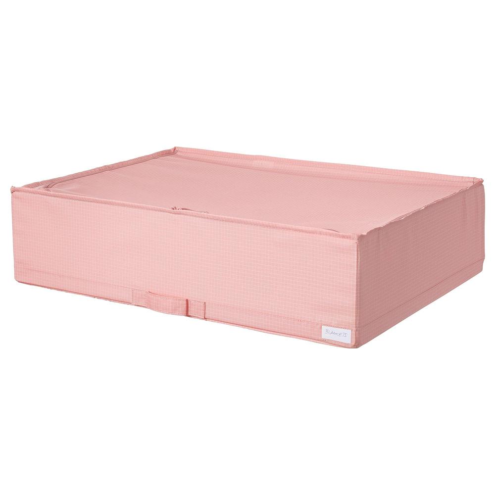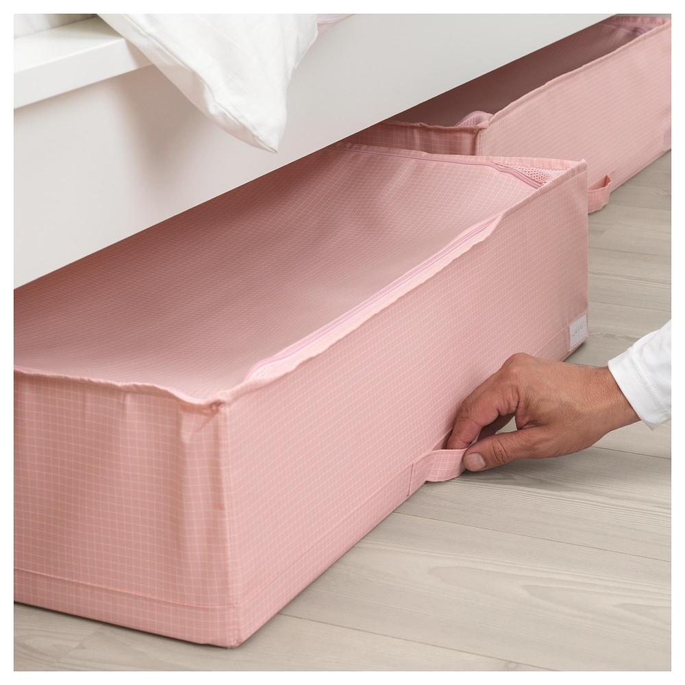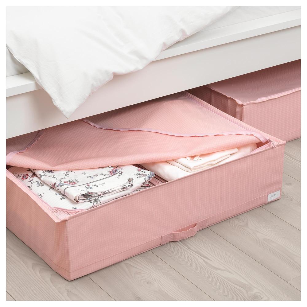-Можно поставить под кровать – отличное решение для хранения постельных принадлежностей.