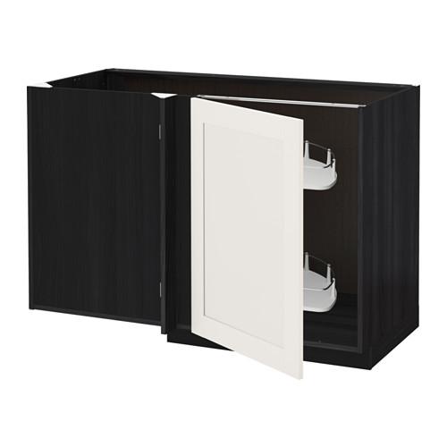 METOD угловой напол шкаф с выдвижн секц черный/Сэведаль белый 128x68 см