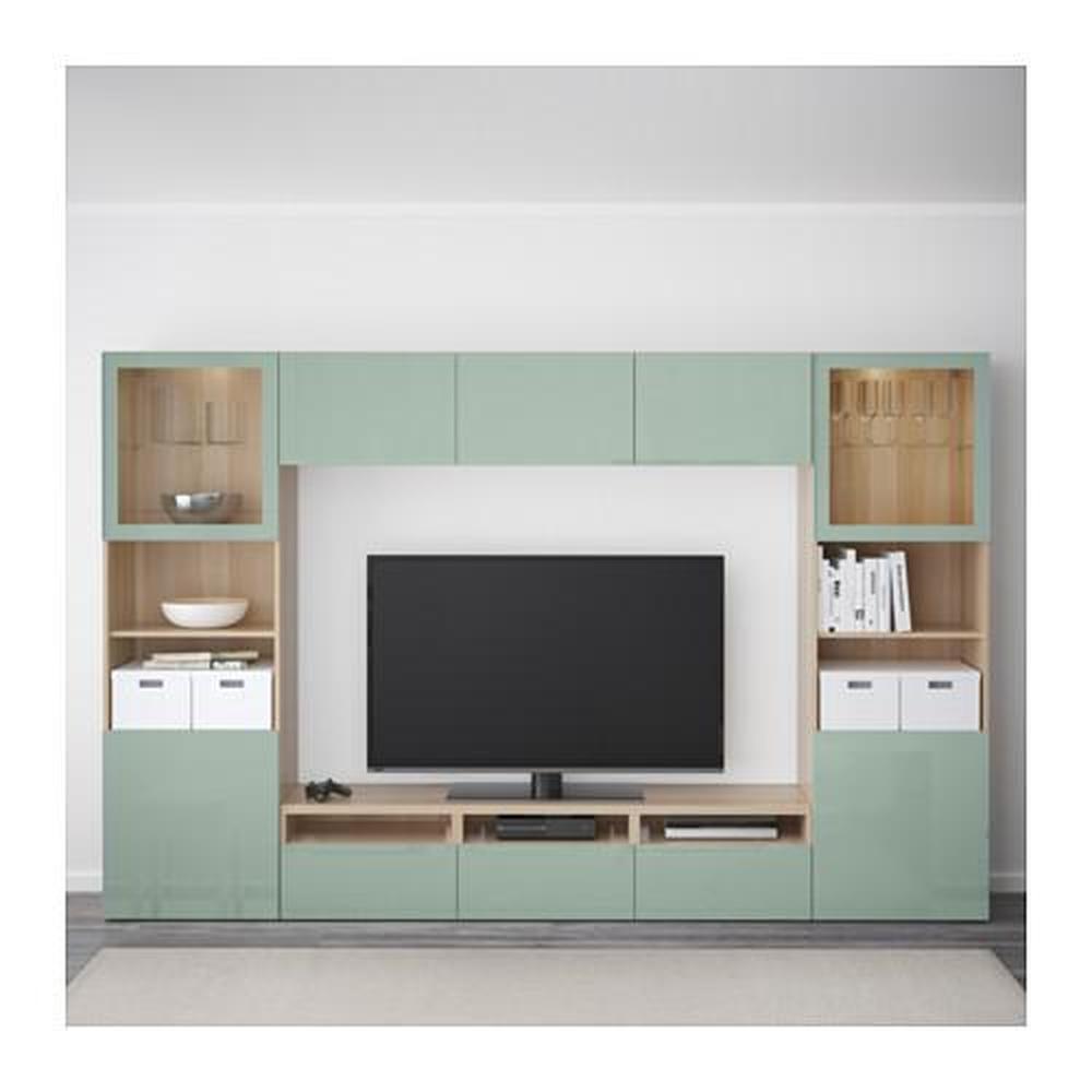 BESTÅ шкаф для ТВ, комбин/стеклян дверцы