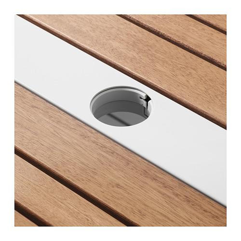 Отверстие в центре столешницы позволяет установить зонт от солнца.